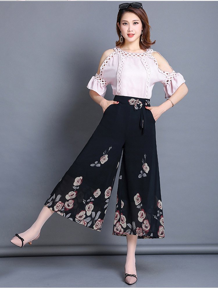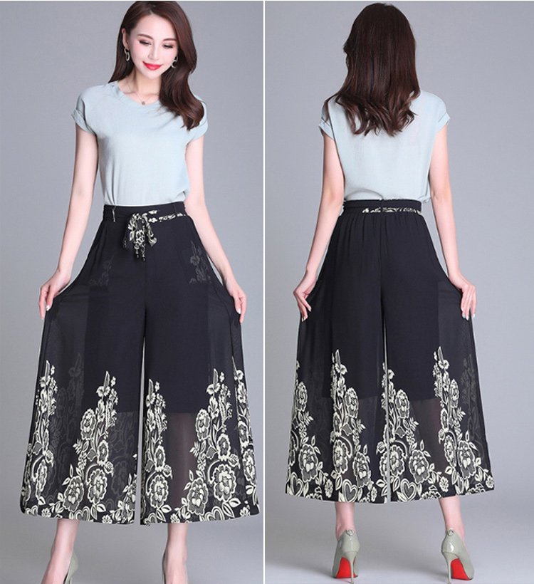 กางเกงคูลอตผ้าชีฟองผู้หญิง พิมพ์ลายดอกไม้