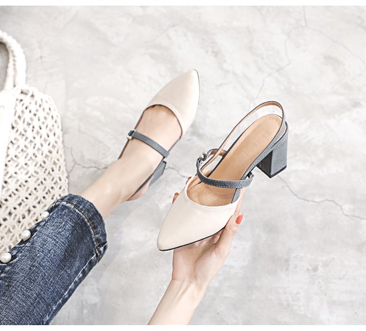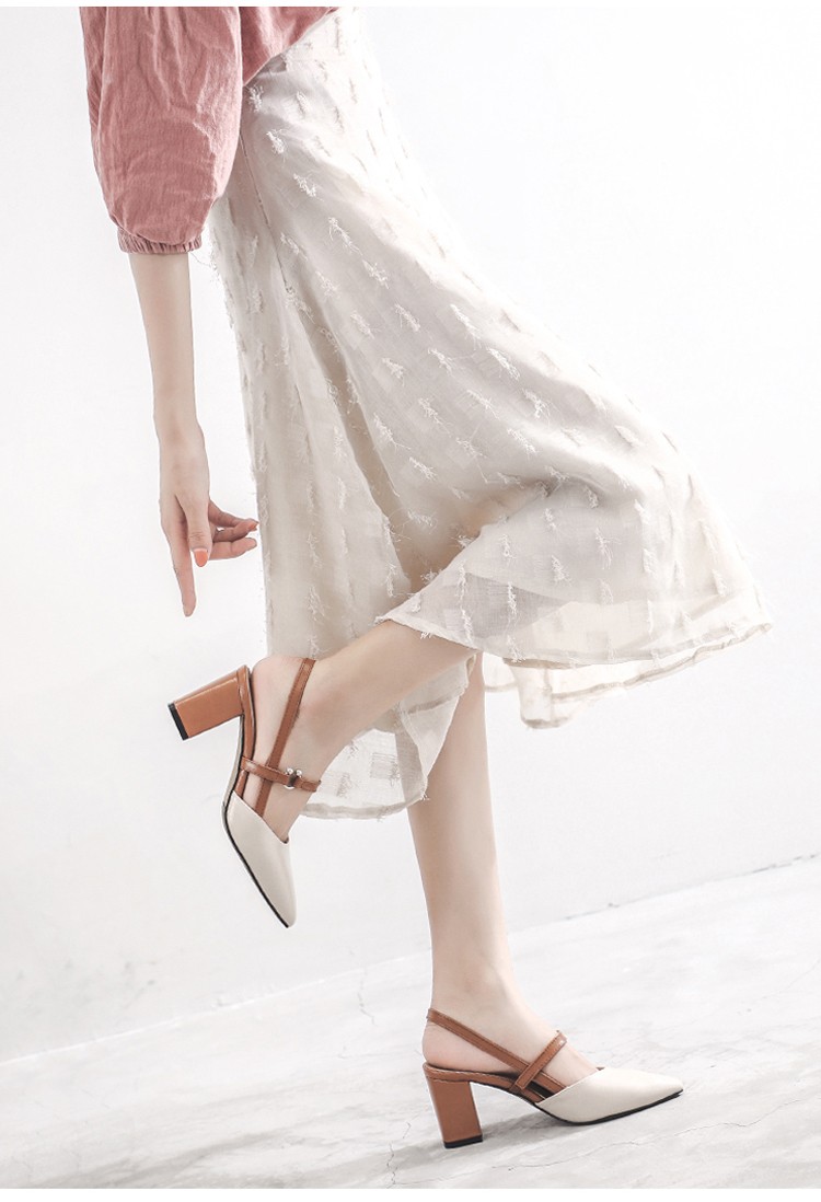 สไตล์ฝรั่งเศส สีตัดกัน แฟชั่นเรียบ ๆ ส้นสูง 6 ซม. เพื่อให้ขาดูยาวขึ้น พื้นกันลื่นทนสึกหรอ เดินไม่เมื่อย แมตช์กับกระโปรง / กางเกง / กางเกงขาสั้นก็ดูดี